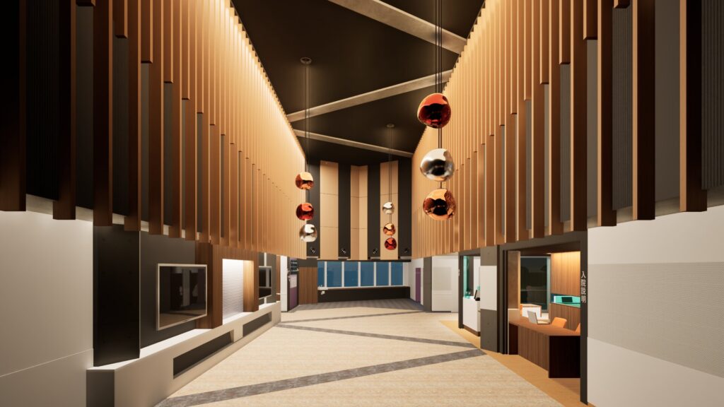 誠愛リハビリテーション病院中央棟3階吹き抜け内部足場